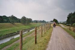 | Emscher-Radweg | Wir haben nicht nur einen Radweg am Kanal entlang, nein, seit einiger Zeit auch gleich daneben einen Radweg "oberhalb" der Emscher. Dieser relativ kurze Fluß, er entspringt in Dortmund, war jahrzehntelang ein Abwasserfluß der Industrie. Bedingt durch den Rückgang der Industrie wird eine Renaturierung des Flusses angedacht. Die derzeitigen Abwässer sollen verrohrt unter der Emscher entlang geführt werden, der Fluss sein annähernd natürliches Bett bekommen. |
